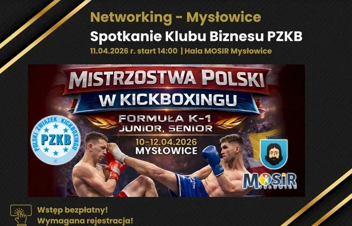Klub Biznesu Polskiego Związku Kickboxingu zaprasza na spotkanie networkingowe, które odbędzie się w Mysłowicach w trakcie Mistrzostw Polski w Kickboxingu. To właśnie ten kontekst nadaje wydarzeniu wyraźny charakter – zamiast sali konferencyjnej będzie sportowa hala, a zamiast oficjalnych formułek pojawi się przestrzeń do rozmów o relacjach, współpracy i nowych kontaktach.